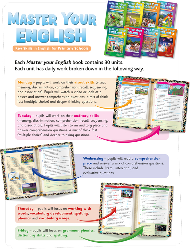 More DetailsMaster your English is a new and innovative English programme for primary schools. Its unique approach focuses on building comprehension and vocabulary skills.